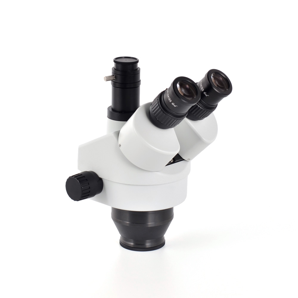 View head: trinocular head, 45° inclined, 360°rotatable, zoom objective 0.7X-4.5X. inter-pupillary range 54~76mm, both two tube diopter adjustment(±5)